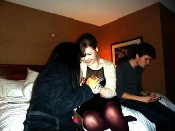 - Due to the significant height difference between her and Justin Kelly (Jake), Aislinn often had to stand on an apple box while filming with him.