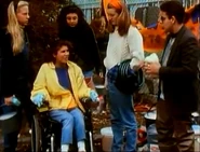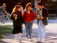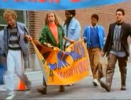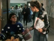 Caitlin and Claude are handing out People for Peace rally slips when Claude tells Caitlin about a factory that is making nuclear missiles. Claude says he really wants to do something about it, and he says he's going to approach People for Peace about it. In the grade nine classes, they're raising money for UNICEF, and there's a competition going on--whoever raises more money will have to be the other's slave for the day. Kathleen is at her locker when Scott approaches her, asking to drive her home..and that he misses her, but she tells him to go away, and walks off.