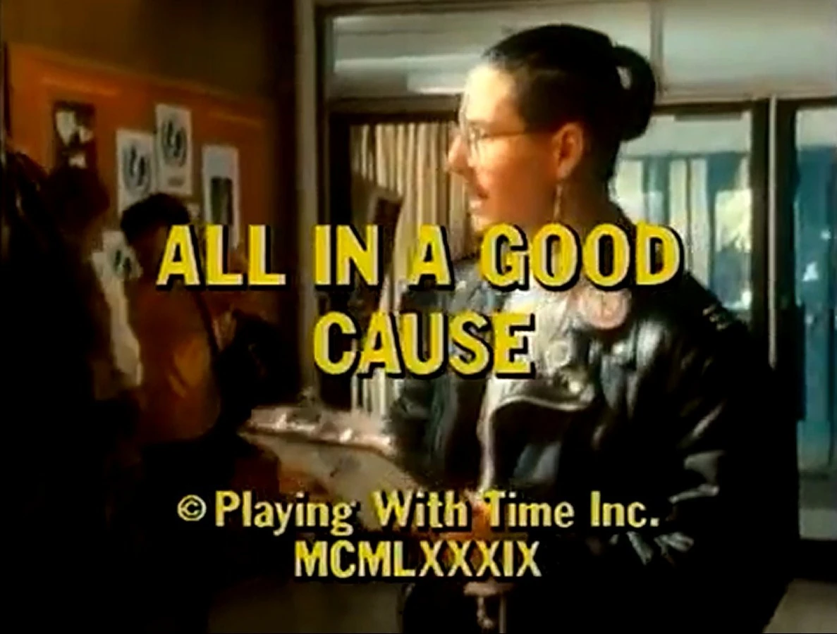 All in a Good Cause is the 11th episode of Season 1 of Degrassi High, as well as the 53rd episode overall of the original Degrassi series. It aired on January 16, 1990.