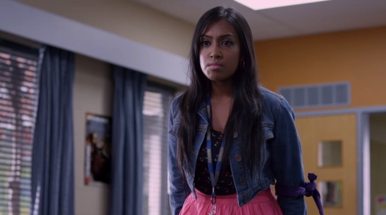 Allia "Alli" Bhandari is a graduate of Degrassi Community School from the Class of 2014. Alli is Sav Bhandari's younger sister and Clare Edwards' best friend. For most of her Degrassi tenure, she has rebelled against her conservative Muslim upbringing and became involved in difficult situations, particularly with boys. After her parents were alerted to her former ways through her disciplinary file at school, she soon realized that she needed to improve her life. Despite this, she makes many of the same mistakes repeatedly, although she has consistently been a good student. She dates a lot of boys including: Johnny DiMarco, who didn't want to be seen with her; Drew Torres, who cheated on her with Bianca DeSousa; and Dave Turner, who got upset when he found out she was counting cards in an illegal gambling game. They took a break while she attended science summer camp; on her return, Dave tells her he slept with someone else. Alli breaks up with him and goes to Jake Martin's cabin where they share a kiss due to her being upset over Dave. They make up and begin dating again. She begins dating Leo Lauzon after a school trip to Paris, and nearly gets married. After he hits her on several occasions, Alli breaks up with him and begins dating Mike Dallas.