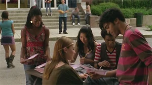In Waiting for a Girl Like You, Chantay talks to Anya, Leia, Sav, and Danny, who are all filling out matchmaker applications.