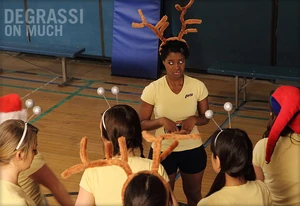 In Fight the Power, Chantay, Holly J., and Anya are in the changing room for the game during the same time that Jane is in there. They cheer during the game.
