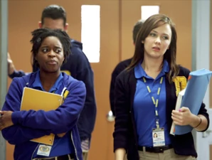 In Purple Pills (2), Chantay confronts Riley and Anya when they're sitting in the hallway against the wall.