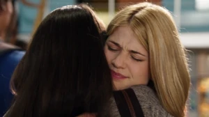 After Luke and Neil are arrested, Zoë walks in upset when she sees friends which causes her to be curious finding out they're there for her. Maya Matlin has a weird look which makes Zoë concerned and sees Becky. Zoë walks to talk to her and both hug. Zoë feels bad about her brother, but Becky says it's not going to be easy, but it's important to do what's right. Zoë and Becky leave on opposite sides.