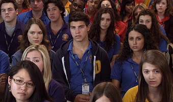 In Come As You Are (1), Katie, Drew, and Bianca are seen at the school assembly together. Katie and Bianca have a short chat. Katie laughs when Bianca takes off her shirt.