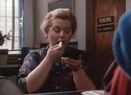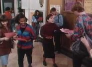 In Mr. Raditch's class, Doris Bell arrives at the door and asks Joey to come with her. She tells him that they've received complaints and has him open his locker, and is shocked when she sees the pictures. Joey points out that he got them out of the newspaper, and asks if L.D. was the one who complained and tells her that L.D. has pictures that are just as bad in her locker, and that the pictures offended him. Doris goes back to the classroom to get L.D.; when she sees the pictures in her locker, she tells her to take them to Mr. Lawrence's office.