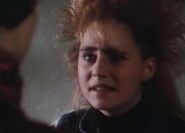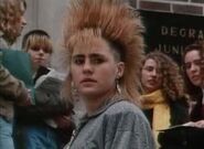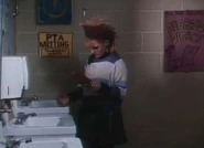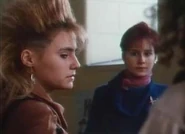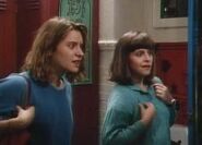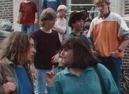 Caitlin talks with Spike in the hallway about hairstyles, then goes to the office; she sees angry parents coming out of Mr. Lawrence's office, and they're obviously complaining about Spike and her condition. They tell Mr. Lawrence as they leave, "That girl is NOT staying at Degrassi!" Back in the hallway, Nancy reminds Caitlin that her school newspaper article is due tomorrow, and needs to be 200 words. Caitlin goes to the bathroom, where Spike is talking to Erica and Heather about all the parents wanting her to leave school; she says that her mom will fight it, but she's only one person, so what can she do?