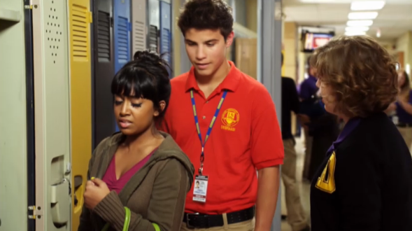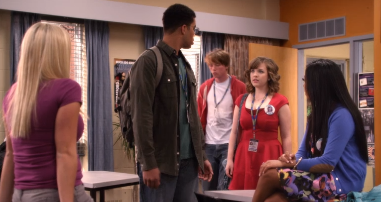 The next day in the cafeteria, Alli and the rest of the prom committee watch Becky and Jonah audition to play at prom. Alli likes them, while Drew doesn’t. Alli says they have five more acts to listen to until they make their vote. Jenna asks where Clare is. Just after she asks, Clare shows up with five coffees in a cup holder, apologizing for being late because of a long line at The Dot. She comments that being the barista’s girlfriend, you’d think she could skip ahead. Alli bolts up and grabs the coffees from Clare. She tells her to not feel the need to stay because she’s got everything under control. Clare looks at her confused and asks if she doesn’t want her involved because she missed a couple meetings. Alli dismisses that and says she is only trying to be an understanding friend before giving Clare a sweet smile. Clare understands now and asks if Eli told her. Alli’s smile drops and she admits that Eli thought she knew. Clare says she didn’t tell anyone because she didn’t want to be treated differently. Alli asks if she’s just anyone now and that she wouldn’t know what Clare wants because she doesn’t tell her anything. She adds that she feels like she doesn’t know Clare Edwards anymore. Clare tells her she’s sorry for being a huge disappointment and Alli assures her that’s not what she meant and asks if they can go somewhere and talk. Clare thanks her and says she’s good before walking out of the cafeteria, leaving Alli upset.