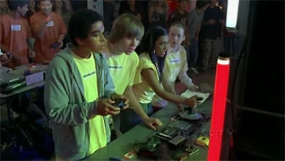 In Lost in Love (2), Clare and the other minor niners are at the robot competition wherein Toby Isaacs is the announcer. As Mr. Simpson asks if they're ready, K.C. smiles and says hi to Clare. She greets him back. Simpson looks between them awkwardly after their exchange and asks Clare if she's with them. Alli says she and Clare need a moment to "discuss strategy" and pulls her aside. She says she thought they weren't letting their hormones get in the way of bot wars. Clare says it's complicated and Alli says she'll simplify. She says "you like K.C., K.C. likes you; go to the dance with him." Clare starts to mention Connor but Alli says he will get over it. Alli walks off. As the competition starts, Clare tells her group to show the crowd what they are made of. K.C. grabs her hand and tells her good luck. Connor sees this and grabs Alli's wrist and repeats what K.C. said. Alli pulls her hand away and tells him to not be disgusting. Connor says that K.C. squeezed Clare's hand but Alli says it's because she's going to the dance with him. Connor asks Clare if it's true and Clare says not now because the competition is starting. Connor continues by saying he asked her and that he was her friend first. He adds that he's way better at robots than K.C. Clare says they'll talk about it after the round. As Degrassi starts losing the match, K.C. asks what Connor's problem is and he runs off. Clare gets mad at K.C. and runs to follow Connor. The next round is on and the niners work together again. Clare runs to Alli's side and Alli asks if she's really not going to the dance with K.C. Clare asks if she's really asking about the dance right now. Degrassi wins third place and they all smile. Connor uses the robot to ask Clare to go to the dance with him just as they win and the crowd cheers her on. She looks overwhelmed and says okay. Connor cheers and K.C. looks upset.