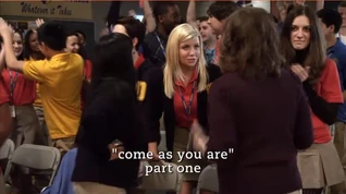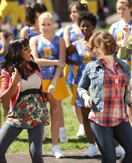In 99 Problems (2), at the game, Alli is the only one left to perform and states that if anyone wants to join her, they are welcome to do so. At first Alli is dancing alone, but Clare joins her and soon everyone else in the bleachers starts dancing too.