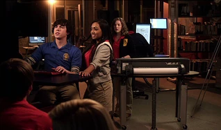 In Lost in Love (1), Alli tells Connor that K.C. is giving Clare a rose. Clare and Alli are later seen sitting next to each other in class as Clare receives a rose from both Connor and K.C. Alli is surprised and excited to receive one herself soon after, though it is blank. Later she and the other minor niners are working on their robot in the hallway. Something goes wrong with the robot and Clare and Connor go up to it to troubleshoot when Connor suggests the problem is the tread on the claw. K.C. disagrees and says it's the arm and motor. They go back and forth until Clare asks why they're acting like idiots. Alli says it's because she hasn't decided who is taking her to the dance. Clare pauses and says she won't go. Later Alli tells K.C. that robots aren't the only way to a girl's heart. He says he gave her a rose but asks what more is there to do. She says he has to put himself out there and take a risk while looking at Johnny.