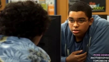 In What's My Age Again?, Wesley, Hannah, and Connor are in science class working on an experiment. While Hannah is taking notes, Connor is staring at her chest. She shoots him an angry look, and becomes so uncomfortable that she moves to another table. Confused, Wesley thinks that he said something that prompted her to leave. Later, Connor asks Hannah why she seemed so upset with him in science class. She angrily tells him that it was because he was staring at her chest. Connor asks her how that's a problem, as Wesley does it all the time. Hannah glares at an embarrassed Wesley, and says that she needs to get to class. Wesley offers to walk her to class, and takes off after her, leaving Connor behind. Connor is still confused as to why he should not stare at other girls' chests. He tells Wesley that he was looking at Hannah's chest because he is curious about girls' bodies, since he does not have a girlfriend. Wesley decides to help Connor find a girlfriend of his own, and invites him to Anya's 18th birthday party, positive that he will meet a girl there. At the party, Wesley and Hannah leave Connor to go wish Anya a happy birthday. When he tries to tag along with them, Wesley insists that he make an effort to become acquainted with some of the girls there.