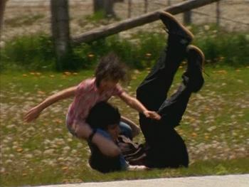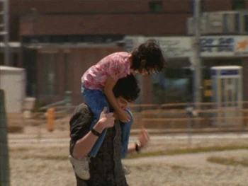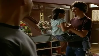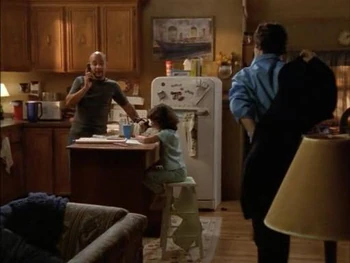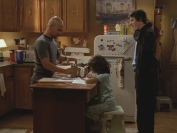 Craig: "Oh, just feeding her to the dinosaurs." - When Doves Cry (1) - (Angie is climbing on Craig's shoulders)