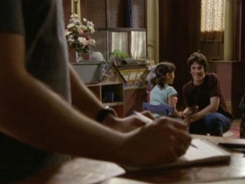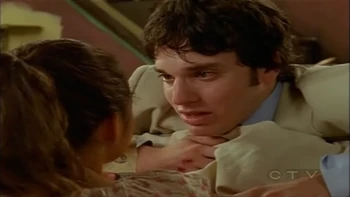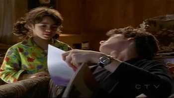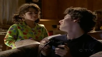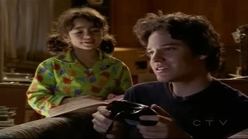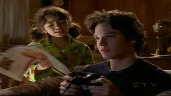 In Time Stands Still (2), Craig, Angie, Joey and Caitlin watched the coverage of the school shooting at Degrassi on the news. Angie saw the affect that it had on Craig, as he began to cry.