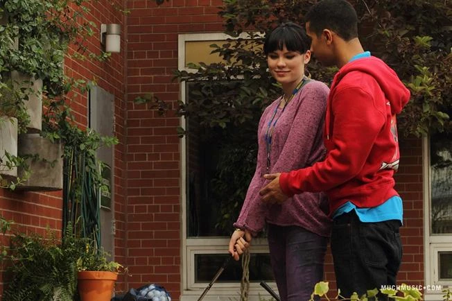 In Never Ever (1), Katie realizes she has a crush on Jake when they are both in the garden and their hands touch. Later in class, Katie and Marisol discuss about what Katie should do. She's convinced that Jake only likes her as a 'gardening buddy' so she pairs up for the school physics assignment with someone she know she wouldn't fall for, Dallas. Dallas is approached by Katie, or as he calls her, "the girl with the dragon tattoo," to be physics partners for an assignment. After school, Katie finds Dallas playing mini golf and tells him that they should be focusing on their assignment. However, both Dallas and Katie start to realize that they have similarities and both of them and she begins to like Dallas and they begin to flirt. Dallas then suggests that he and Katie should play golf sometime, but she replies that she would rather focus on the assignment instead and walks away. After Katie decides to not take Jake up on an offer to buy some garden materials after school, she decides to take up Dallas's offer to play golf. Dallas tells Katie some tips and tries to get close to her and get her into the right position, but Katie quickly tells him that she knows what she's doing and he backs away. Impressed with Katie's shot, she and Dallas begin to flirt again and say how they should start Degrassi's first ever golf team. When Jake walks in on Dallas and Katie playing golf, he is disappointed that she decided to hang out with Dallas instead of him and walks away. Dallas asks Katie if she's sure if Jake isn't her boyfriend, to which she replies that he's not and the two resume playing golf Katie reveals to Marisol that she is growing feelings for Dallas, and Marisol tells her that it is a bad decision.