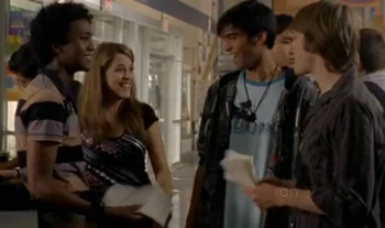 In Uptown Girl (2), Danny, Sav, Derek, and Peter are walking together when Mia gives Danny a signed Tom Blake photo that he asked for.
