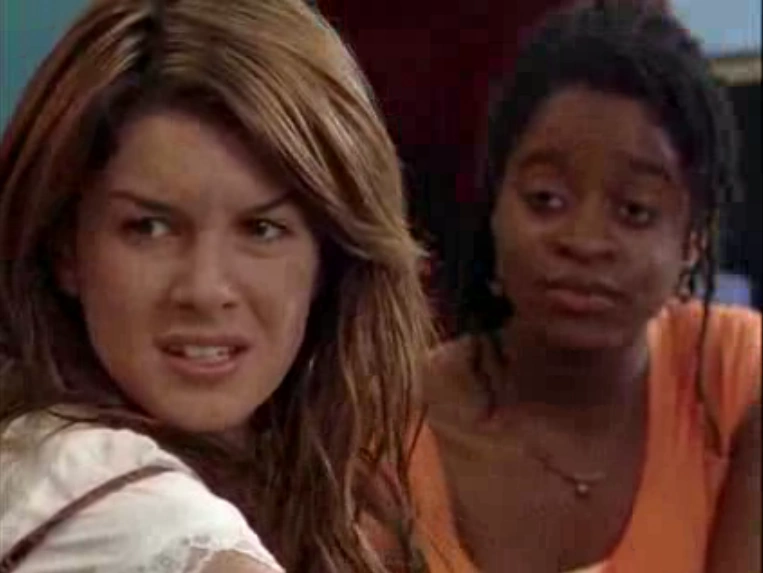 In Our Lips Are Sealed (2), Darcy wonders why Emma's wearing a sweatshirt and pants combo that is way too big for her. Emma says that she's cold and Chantay responds that she's "whacked." Darcy then says she think she sees an extra ounce on her butt and Chantay adds that they have to call Weight Watchers. Emma then snaps at them, asking if it's fun to laugh at the tub of lard, says she knows what's wrong and they don't have to keep pointing it out. Manny, Darcy, and Chantay watch on in shock. Darcy tells her they were only kidding and Chantay asks if Emma's okay.