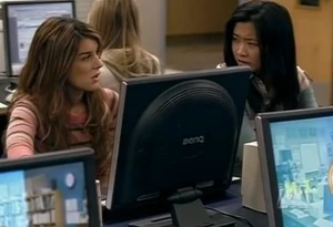In Sunglasses at Night, the Friendship Club has a meeting. Darcy mentions how the charity turkey dinner was good, and Kim adds that they're going to organize another event. Peter then enters the room and interrupts the meeting. He says that his mom wants Darcy to come and see her. Darcy leaves, while Kim looks disappointed. Later, in Media Immersions, Mr. Simpson asks everybody if they have any suggestions when it comes to the internet. Peter says that its about censorship but Kim says its about keeping the Internet safe. Peter says, "Who gets to decide what's safe and what's not, Kim? You?" Kim turns to Darcy with an annoyed look. Darcy then tells Peter that she isn't surprised by that because she believes that Peter only cares about himself. She then gives Peter a wink. They continue role playing until Simpson tells them to stop. Kim gives her an approving look.