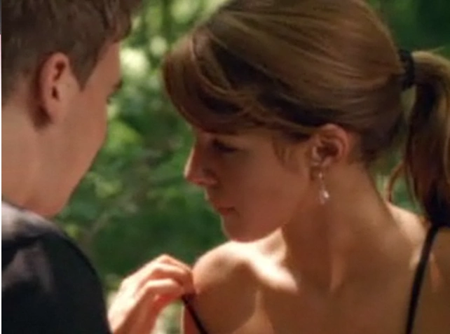 Darcy: "I used to play here when I was little and I used to dream about my prince who'd sweep me off my feet at our perfect wedding. (Darcy gets up off the swing and sits down in front of a log pile) I just found out I have Chlamydia". (jokingly says) "Got any antibiotics?"