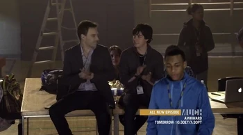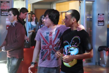 In Got Your Money (2), Eli is taking pictures of Dave and Tristan as a photoshoot for posters for the play, but the hockey players notice what they’re doing and mock them. Eli tells them to keep it down, and Luke tells Eli that he should keep the gay stuff to himself. At the dance, Eli shows off his giant poster for the play, which features Dave and Tristan.
