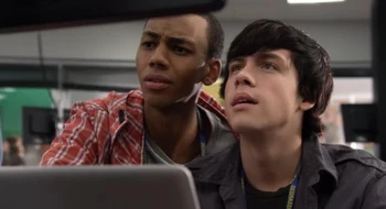 Later, Dave is seen practicing with Tristan, along with Eli watching. Eli asks if he is OK, because he's not sure he's feeling it. He says he's just warming up, to which Tristan replies, "Warming up? We've been doing this scene for an hour!" He says he's not sure he can do it because he isn't gay (adding "no offense" to Tristan). Eli says he's also not Italian. He tells him he doesn't actually have to be in love with Jules, and he makes a joke, saying it'd be easier if he looked like Ryan Gosling.
