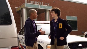 In Umbrella (1), the fact that Dave's dad is a cop at Degrassi is hurting his chances with some new friends. Dave's desperate to leave the nerd circle behind, but Wesley won't go quietly. His new friends believe that the cops are only there to get the students in trouble if they find anything and Dave plays along. Wesley interrupts their conversation and reveals that Dave's dad is Officer Turner, the cop they were just talking about. Dave's new friends believe that Dave is just hanging out with them as an inside source. The episode ends with Dave pushing Wesley against the lockers and asking why he did that. Wesley simply shrugs and says that it just slipped out.