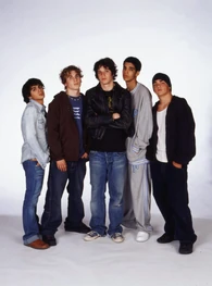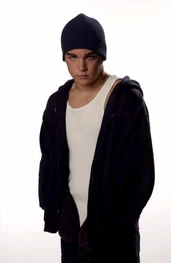 The camera zooms to the right where we see some teenagers spray painting on the bus station outside of the school. It zooms back and shows Sean smiling as he shakes a can of spray paint. The name "Daniel Clark" zooms up. He then turns to his left and looks surprised. His name zooms off to the left and the camera zooms to the right where we see Mr. Raditch looking at Sean with his arms folded. The name "Dan Woods" fades in. He then sees the camera and looks surprised. His name zooms off to the left. He puts his hand over the lenses as it zooms to the right. We're not seeing things from Ellie's perspective as the camera shows Marco standing in the hallway with Ellie, with her back to the camera, standing in front of him with her camcorder. The name "Adamo Ruggiero" fades in. She points to him as he takes his sunglasses off. His name fades out. He then pops the collar of his jacket and turns around. The camera zooms into his back where we see the "Degrassi: The Next Generation" logo displays.