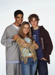 The intro begins with a shot of the front entrance of the school. The camera pans to the right and we see Ellie across the street holding a camcorder and recording at the school. The name "Stacey Farber" zooms in from the left side of the screen. The camera shows her and she turns to the right. The camera now takes the perspective of Ellie's camcorder. It goes by the front entrance where we see a teenager skateboarding down the railing. Next to Chris, it stops at Emma who is at the bottom of the stairs passing out flyers. The name "Miriam McDonald" fades in and she looks into the camera smiling and sticks her tongue out. Her name zooms off to the right and the camera goes to the right and shows Jimmy on the basketball court. The name "Aubrey Graham" fades in. Spinner tries to stop Jimmy from scoring but he goes past him and shoots the ball. The camera shows Spinner and looks up as Jimmy scores. The name "Shane Kippel" fades in. He then catches the ball as it bounces to him. His name zooms off to the left.