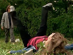 Back at the park, Paige tries to convince Terri to get away from Rick. Then she calls him a "psycho" and he storms into the woods. Terri then tells Paige she's sick of her telling her what to do and follows Rick. There Rick is furious, and he and Terri talk and kiss then she wants to go back, but he suggests they walk. Then after an argument he grabs her arm hard, and wouldn't let go. Terri tried to pull away, but just when he let go, she was trying to get away and she falls, hitting her head on a rock. Paige is worried and goes with Spinner to find Terri there. Rick takes off as they find Terri and call an ambulance.