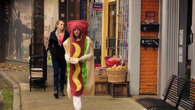 Tristan wants Maya to tell Miles the truth, but she is too embarrassed that she has to work instead of being able to go to the formal. She is convinced that he will dump her if she tells him the truth. Miles shows up in a fancy car, which he intended to use for their ride to the dance. Maya lies to him, saying that she has a history assignment, and Zoë, who had walked up, makes a snide comment to her. Maya promises to make it up to him, but Miles tells her not to put herself out, which causes her to leave. Zoë tells Miles that she's still available, and Miles asks her if Maya is allergic to fun, to which Zoë realizes that Miles doesn't know about Maya's job. Later while Maya is working, Miles shows up in his car, and Maya tries to hide from him, not wanting him to see her working in such a silly costume. He calls to her, saying that he already saw her, and Maya tells him that she would prefer he dump her over text. Miles says that he isn't there to dump her, even though he was angry. He asks her if she knows what goes well with hot dogs, and steps out in a french fries costume. Maya happily gives him a hug.