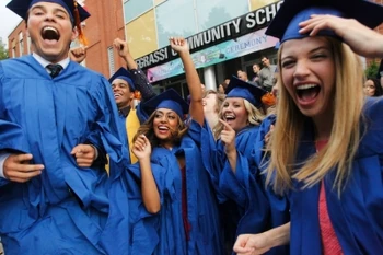 Dallas and the rest of the Class of 2013 watches as the recent graduates celebrate.