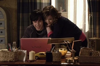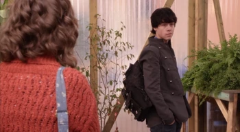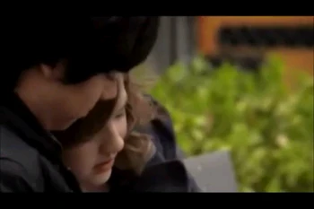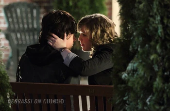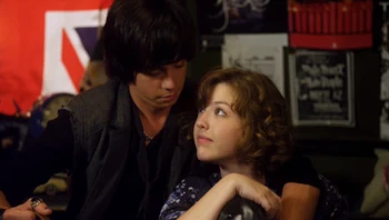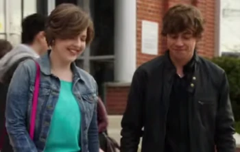 In Still Fighting It (1), as Clare gets up to get their assigned film package, Eli gets up and blocks her way, saying he'll get it. They smile at each other and Eli turns, Clare looking at him, flustered. Clare tells Adam excitedly that there's something going on between her and Eli. Adam says to make a move and Clare tells him they need the right moment. Eli comes back and smiles, saying they get to delve into Romeo and Juliet. Clare looks at Adam with a smile. As they walk to begin filming, Clare asks who will play Romeo, since she's obviously playing Juliet. Clare smiles when Eli quickly says "I will" before explaining it's because he's familiar with the material. Adam sarcastically asks what he's not an expert on. Eli and Clare come up with the plot of their assignment, with Clare saying that Juliet could wake up just after Romeo drinks the poison and Eli adding that they could have a final kiss together. Eli, Clare, and Adam start to film. Eli and Clare share their first kiss during the kissing scene and Clare is eager to ask if they need another take but Eli says he thinks they got it. Clare is hurt later on when Eli becomes distant and rejects her in class. Adam doesn't seem to know what's going on either. Later in the parking lot, Clare wheels her bike up to Eli who is working on Morty with music playing. She turns off the music and insists they like each other. He refuses and she says either he is denying it or he's a sociopath who likes to jerk people around and she knows he's not the latter. He stares at her and she says that maybe he is. He says he's sorry he led her on and she lets out an angry "Wow" before turning away. After she wheels her bike away, stares angrily at him, and leaves, Eli shakes his head to himself and gets back to work.