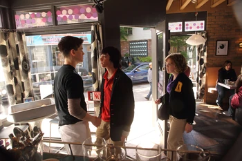 Eli is waiting for Clare outside the school doors when Clare appears and they both nervously say hi to each other. As they start walking down the steps, Eli asks how Helen is. Clare gets a call from Drew but lies to Eli, saying it's telemarketers. They both awkwardly try to speak and Clare says Eli can go first. Eli asks how she's feeling. Clare says she didn't know she could feel barfy and hungry at the same time so she just feels different. Eli and Clare sit down at a table. Eli asks Clare if she has time for a spicy tuna roll before she goes back to class but Clare tells him she can't eat sushi because of the baby. Eli asks if it's forever because he's knows a place in New York that has the best sashimi. Clare says maybe when she comes to visit him. Eli is confused and asks if Clare isn't going to Columbia. Clare explains she can't see how she can with the baby and all this year at least. Eli reminds her that it's her dream. Clare says she's not giving up on it, she's just postponing it and Columbia isn't going anywhere. Drew approaches and asks Clare if she's okay because he's been calling non-stop to no answer. Clare explains she was hanging out with Eli but then Eli gets upset that she lied to him. Drew tells Clare he's glad she's okay. Eli gets up and says he can't do this if Drew's going to around all the time. Drew tries to say he's sorry and adds that it's not Clare's fault. Eli rebuffs him saying he wasn't talking to him and turns to Clare saying he wants to be with her but he doesn't want to be with her and Drew. Drew tries to say he is the father but Eli rebuffs him again, saying he's still not talking to him. Clare tells Eli if he wants to do this then he has to accept that Drew is going to be involved. Eli looks at them both before saying he doesn't know if he can and walks away.