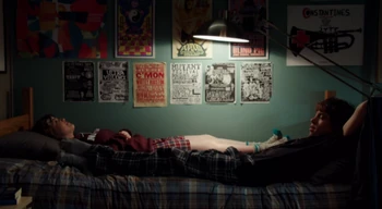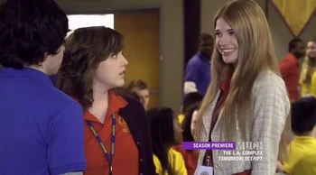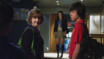 In Teen Age Riot, Clare tells Alli and Eli about how Ms. Pill is spying on their secret conversations at school and they give her advice about not dropping out of being valedictorian because of her.
