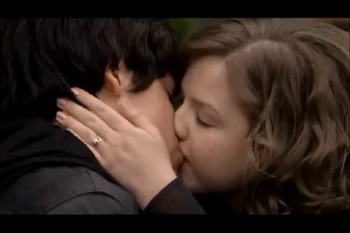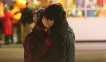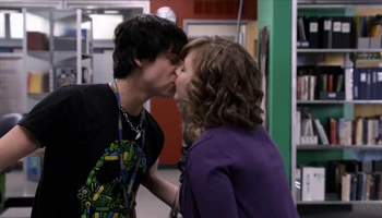 Eli and Clare share their first kiss while filming an assignment for Ms. Dawes.