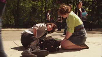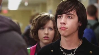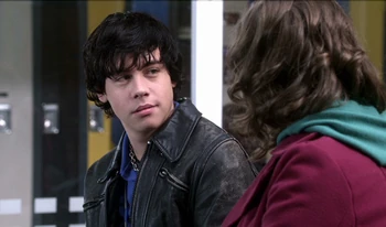 In Try Honesty (1), Eli tells Clare about how Mark "Fitz" Fitzgerald snapped Morty's hood ornament off. Eli is angered further when Fitz pushes Adam against the lockers. Clare tells Eli to ignore Fitz, but he doesn't listen, saying the only way to deal with a bully is refusing to be the victim. The next morning, Eli tells Clare that he considered her theory, but it was unsatisfying. Clare tells Eli he doesn't have to impress her and Eli asks Clare what made her think that. After Fitz says a few snide remarks, he knees Eli in the "nards." Eli then is convinced that he should beat up Fitz. Clare disagrees and says that it will only make things worse.