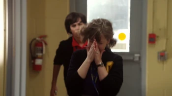 and Clare says she is there to pick up Eli's English homework. Mr. Goldsworthy tells them nobody is allowed in Eli's room, but Clare says she knows Eli's combination, and he lets them in. She tries to guess the combination but it doesn't work. Adam suggests the date of Julia’s death and it works. They open the door to Eli's bedroom and find out it's a really messy room. Back at school, Clare is waiting by Eli's locker and says she understands he didn't reject her but that he's just embarrassed because he's messy but it's okay because she can deal with messy. Eli opens his locker and finds out Clare cleaned out his locker. He starts to freakout and runs to the recycle bin to get the stuff she threw out. She tries to calm him down but he yells at her, which scares her, and tells Clare to go away. Shocked, she backs away from him and walks off.