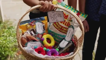 Zig and Miles hand Clare a gift basket they found on her doorstep from Eli.