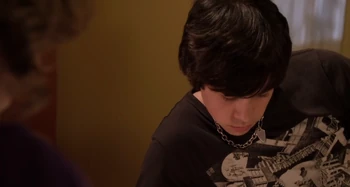 In Jesus, Etc. (2), Eli is first seen reading in an empty classroom when Clare comes up to him and apologizes about talking to Fitz and freaking him out. He says it's okay and continues reading his edited story. Clare asks him what he thought about the changes she made to his story. He stands up and tells her she improved it and he's impressed. She throws her arms around him and gives him a hug. She tells him that he has nothing to worry about and promises to not let anyone come in between them. He says they should promise not to fight anymore and then she gives him a quick kiss before the bell rings. Later, Clare tells him over the phone that when he's done working on his story, he can come over to her house. When he arrives, he is shocked to see Fitz standing with Clare in her living room. Clare explains that Fitz had just showed up, beaten up, and that he's having problems at home. Eli says it's just another lie and asks her why she even cares. She tells him anyone with a heart would care about someone in trouble. Eli responds by asking her if she's saying he's some heartless monster to which she blurts out "sometimes." Both seems surprised by the comment and Eli just stares at her in disbelief. Fitz chimes in saying that he and Eli need to talk. Eli turns his attention to Fitz saying he has nothing to say to him and walks out. After Fitz leaves, Clare comes outside to find Eli sitting in Morty will his head down. She gets in and apologizes for calling him heartless and says she didn't mean it. He says it's fine and he deserved it. When he lifts his head up it shows that he is crying. He tells her that he doesn't want to lose her but feels like she's slipping away and there's nothing he can do to stop it. He asks her to promise not to leave him and she agrees. The next day, he tells her that he finished the story and changed the ending after being inspired by what happened with them and Fitz the previous day. He tells her that in the story, the hero realizes he can't protect the heroine so he kills her, drinks her blood, and that way they can be together forever as one. Clare says that's disturbing but he says it's his masterpiece and a true horror story. He tells her he couldn't have written it without her and that it's all about her. Clare seems unsettled by this but just brushes it off with an nervous joke. Eli says he owes her a driving lesson and gestures toward the exit. Before leaving, Eli publicly declares his love for Clare and puts his arm around her. They smile at each other and once they turn away, both of their faces change. While she looks somewhat nervous and uncomfortable, he looks somewhat possessive and sinister. They then walk off, with Clare looking rather uncomfortable.