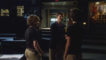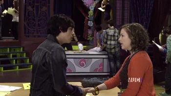 In Gives You Hell (2), Eli is seen in the hallway going over list of students that auditioned for the role of Juliet. Clare sees him and asks about the Juliet callbacks. After seeing Eli's frustration, Clare jokes about auditioning, even getting him to smile by doing a little dance. Eli admits to having issues with his partnership with Becky. Clare reminds him that he will be working in these types of situations when he's at college, but Eli believes that this musical won't get him into NYU. Clare tells him, "When we watched The Dark Knight together, you talked nonstop about how Christopher Nolan took all these familiar, played out elements, and made them new again." Clare tells Eli that he can do that too, he should find a way to make it his own, and that she believes in him. Eli feels slightly better and affectionately holds her hand while they gaze at each other for a moment.