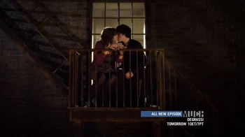 Clare, nervous that Eli is getting closer, gets out "Three, no saying the exact thing I need at the exact moment I need to hear it." Eli reaches out his hand to touch Clare's arm but she steps back and says "Four, no physical contract of any kind." Eli tells Clare he'll obey any rule she wants but asks what she's scared of. She has little time to answer before Eli leans in to kiss her. They break apart and Clare responds to his question by saying "That." They quickly embrace again and fall back on the couch.