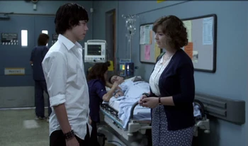 Eli and Clare in the hospital after Eli purposely crashes Morty for Clare.