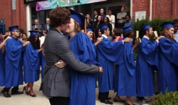 Outside, Eli and Clare approach each other, Eli says "Did anyone ever tell you you have pretty eyes?" Clare smiles and says that feels like forever ago, Eli says kind of like yesterday. Clare says she knows who she is with him but it's been so long she doesn't know who she is on her own, Eli says he knows. Clare says she needs to take time to figure it out or else she'll regret it, Eli says he knows, Clare says she doesn't now what the plan is but she's giving herself a year, Eli says he gets it, Clare says "you do?" Eli says "look I will miss you but if I love you now, imagine how much I'll love the person you'll become." Clare says she thinks they can make long distance work and Eli gives Clare the key to his apartment and tells her he knows that they can. Clare takes the key with a smile and Eli asks if she wants to go with her friends. Clare pauses and says "well..." Eli tells her to go and that they'll always find their way back to each other. Clare agrees and with a smile she says "but first..." and she kisses him. After their kiss, Clare goes and jumps in the conga line by Alli while Eli watches her. They shout that they'll miss Degrassi and we never see them again.