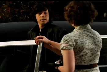 In Breakaway (2), Eli and Clare first meet after Eli runs over Clare's glasses with Morty, Eli's hearse. Eli then tells her that he thinks they are dead. Clare, flustered, explains to him that she just had eye surgery and doesn't need them any more. Alli Bhandari's eyebrows raise when she sees Clare have a bit of a struggle getting her words out. Eli then tells Clare she has pretty eyes. She thanks him and says she'll see him around. He replies that he guesses she will, smirks, and drives away. Alli tells Clare that she's seen that look on her face before. Clare tells her she has no idea what she is talking about but smiles. She then confidently throws her glasses away in a nearby trashcan.