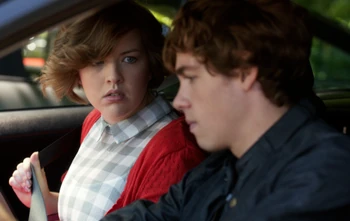 Eli and Clare are on the road as Eli comes up with potential questions Columbia's admissions officer might ask her like, "our first year program is full, how do I propose I let you in?" Clare confidently responds that she's willing to audit the classes until the first few students inevitably drop out. Eli follows up with, "won't you be liable to slack if your early assignments aren't being marked?" Clare says "no, I'm the most determined girl you'll ever meet." In a gas station, Eli and Clare are buying snacks. Eli asks if she wants corn chips and she replies that she definitely wants them, with salsa. Eli continues the questions, saying, "great you're in, but you will have to find accommodation in New York City which can be very difficult." Clare slowly says she'll tell her she will live with her boyfriend. Eli is surprised and asks "really?" Clare asks if that sounds nice. Eli smiles and says obviously. Eli turns away and excitedly finds raisins, which Clare brands as disgusting rotten grapes. Clare turns and asks about beef jerky. Eli playfully says, "oh sure, dried fruit gross, but dried animal carcass, mmm." They laugh. As Eli asks Clare what makes her equally deserving of this exception, Clare comes upon a frame for a baby photograph and stares at it, taking it in. After a beat, Eli says her name and she replies to Eli's question with, "I tell her 'if you think I overcame adversity when I beat cancer, wait 'til you see what I'm like after losing a baby.'" She stares for a bit longer, sad, and turns back to Eli.