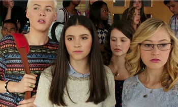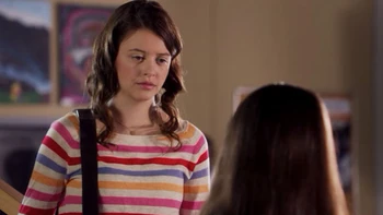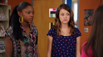 In Out of My Head, Zoë is walking in the hallways with Frankie and Keisha and Frankie talks about how Becky Baker changed her mind so quickly. Zoë responds, "Was her mistake not knowing how rich you are?" Frankie responds, "What does that have to do with it?" Keisha says, "Maybe she's hoping to fly down to New York fashion week on a Hollingsworth jet." Frankie responds, "Or maybe she realized I'm a good model." Zoë says, "Or maybe your mom slipped Becky a little donation so she could help change her mind?" Frankie responds that's ridiculous. Frankie says, "She wouldn't do that, right Keish?" Keisha responds, "Well, there was that time in grade 2 when you magically got put in front of the Ballet recital, after your mom 'talked' to the instructor."