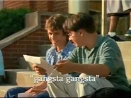 Gangsta, Gangsta is the sixth episode of Season 3 of the Canadian television series, Degrassi: The Next Generation. It originally aired on October 22, 2003 on CTV Television and on October 24, 2003 on The N. Its title is based off the song by N.W.A.