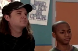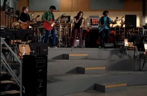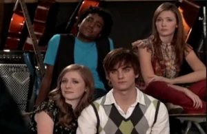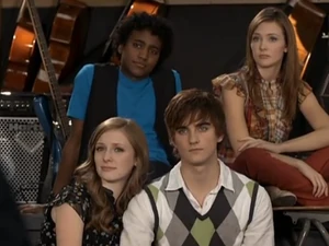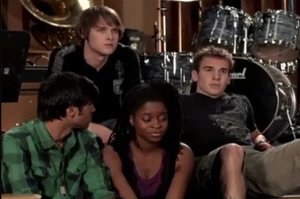 Anya yells at Sav, and Sav asks if he could know what he did. Bruce comments to Dave that Anya gets really mad, and Sav flips his hair around while trying to determine how much trouble he is in. Sav tells her that she can't come barging into practice, saying it is embarrassing. She yells that he helped hook Holly J. and Declan up, which ruined her English project, as they can't stop making out. Dave and Bruce watch in amusement while eating popcorn. Jane asks how bad it can really be, and Anya confronts her, saying she encourages their behavior since she is Holly J.'s friend. Bruce reveals to Dave that everything at the school happens to this band, their friends, and their stupid colored jeans. Anya tells her to "Ease off, cleavage", causing Spinner to say that only he can notice the boobs while pushing Peter away. Dave and Bruce get excited for what is coming next, and Anya asks Sav if she could work with him on the project, which causes him to smile. Jane tries to start playing the song again, and Sav tells Anya they could talk about it after practice. Anya's mouth drops open at the fact she was put off, and she walks out angrily. The band begins playing again, but Sav stops once again to chase after her, saying he should fix this. Spinner comments that maybe they should finish a song for once. Peter comments about Sav that he was going to cough, "Whipped!" into his hand, but there really wasn't a point anymore. Chantay appears in the room, and Danny is happy to see her, unplugging his guitar to go see her. She says that she thought she would find him here, and he tells her that she thought right.