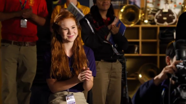 In Hide and Seek (1), she was with the class that dug up their letters to themselves from when they were in 7th grade. She exchanges looks with Clare when the box was dug up, and glances at Wesley when he begins reading his letter aloud.