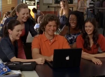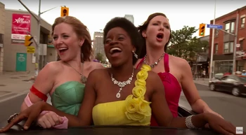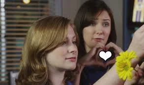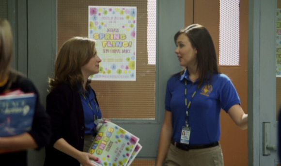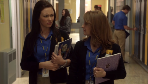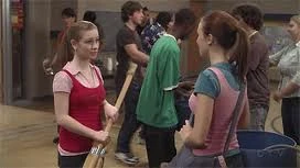 In LoveGame, Anya, Fiona, and Holly J. share a hug upon realizing that it is their last semester together. Sav breaks up their hug because he needed Holly J. for the announcements, and Anya and Fiona walk away together.
